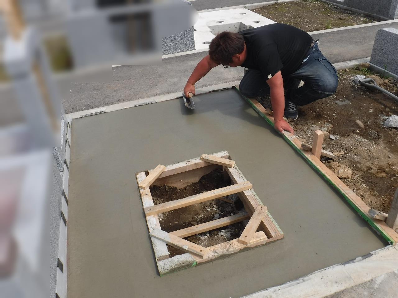 お墓を支える最初のステップは、しっかりとした基礎コンクリートの打設です。