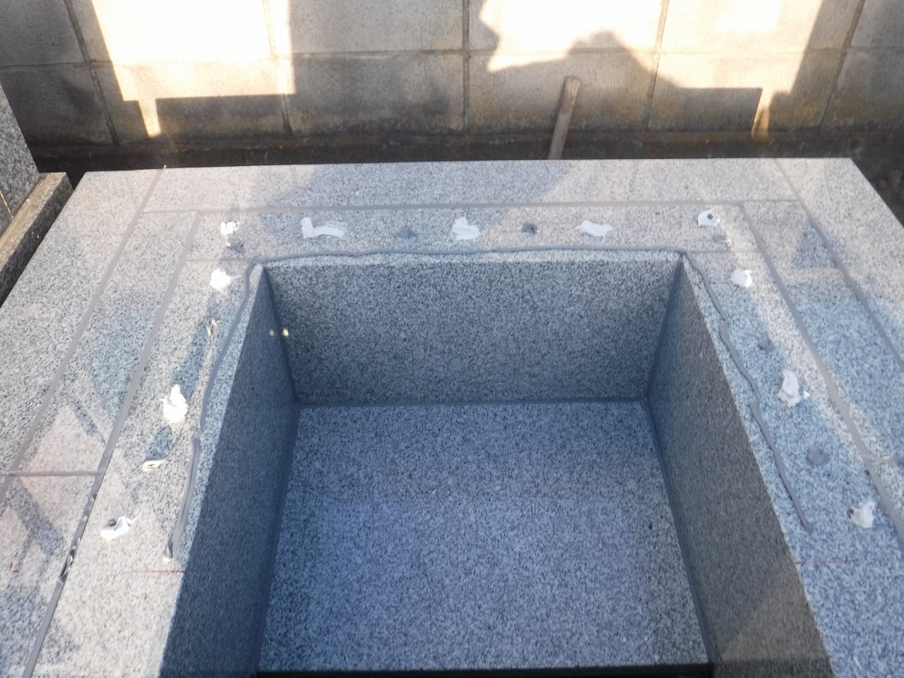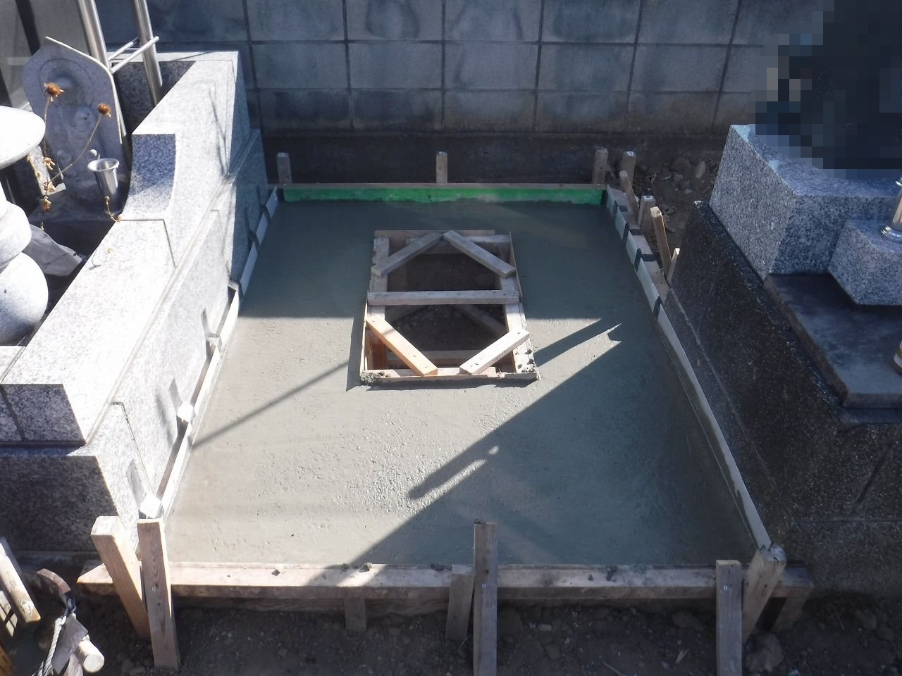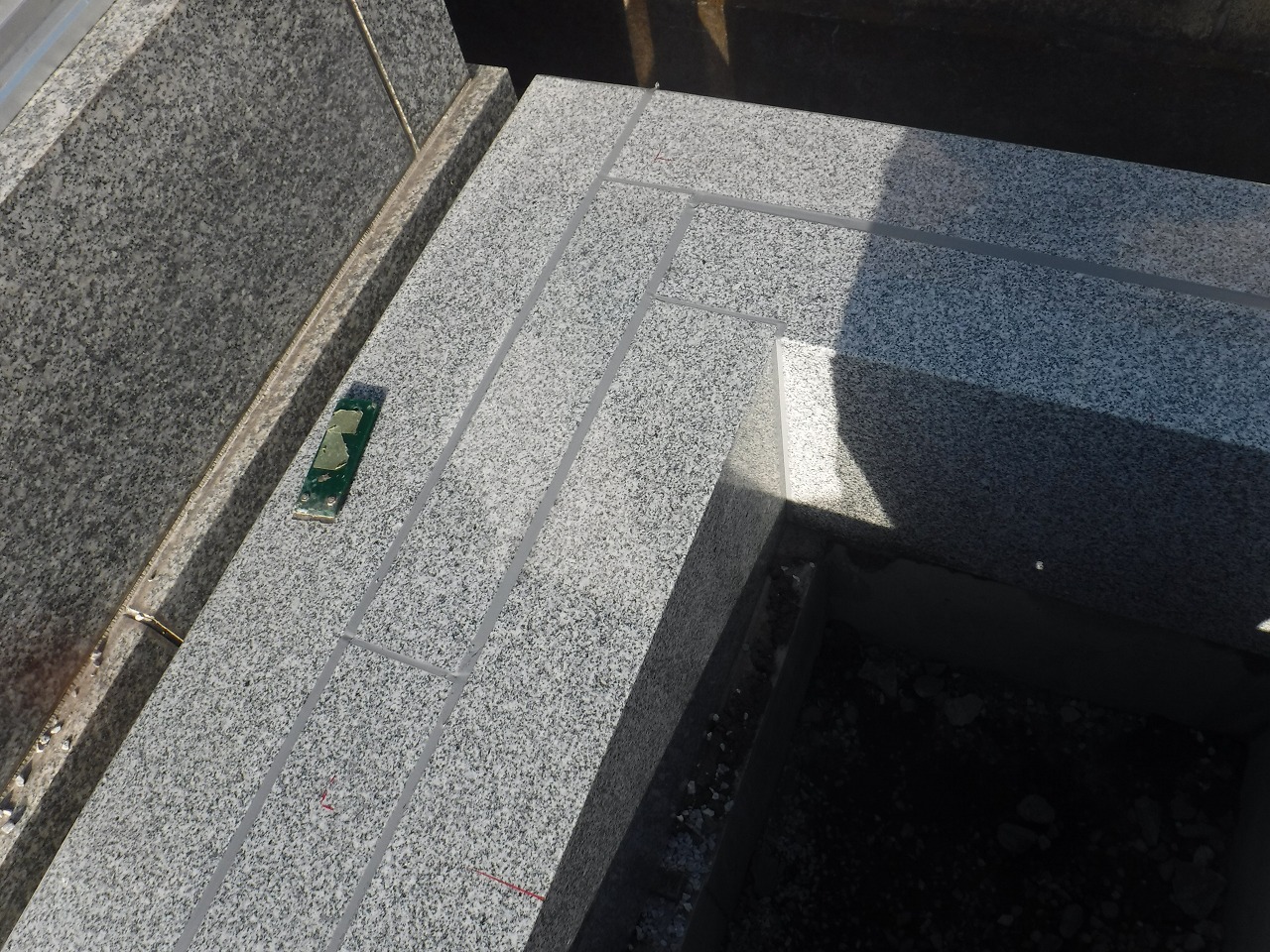 中央の開口部は「納骨室(カロート)」へと繋がる大切な土の部分です。