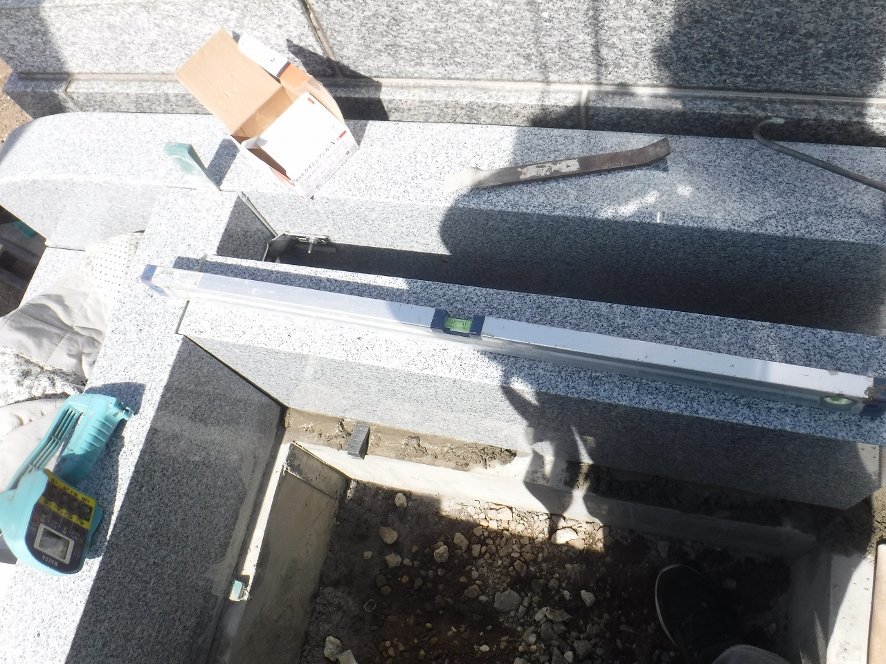 一石一石に感謝の気持ちを込め、お施主様が末長くお参りできるよう、水平・垂直を厳密にチェックしながら進めてまいります。