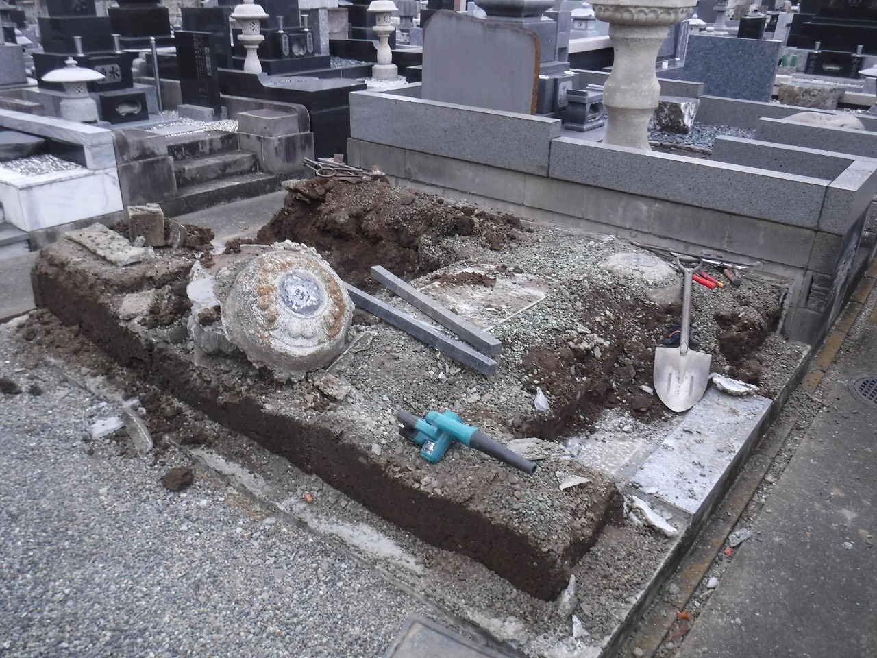写真をご覧いただくとわかる通り、お墓の下にはかなりの深さまで構造物が入っています。