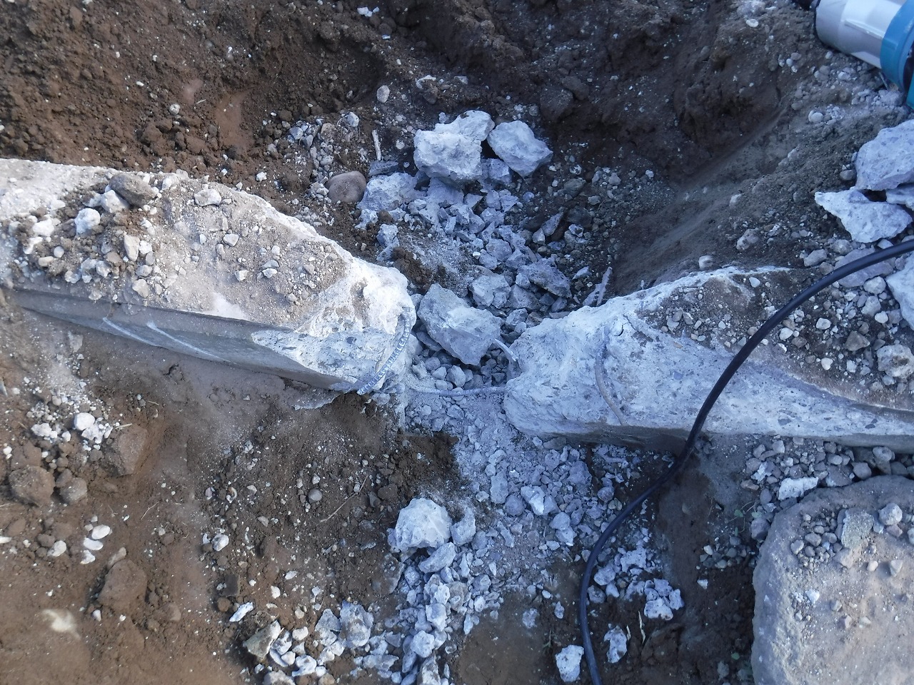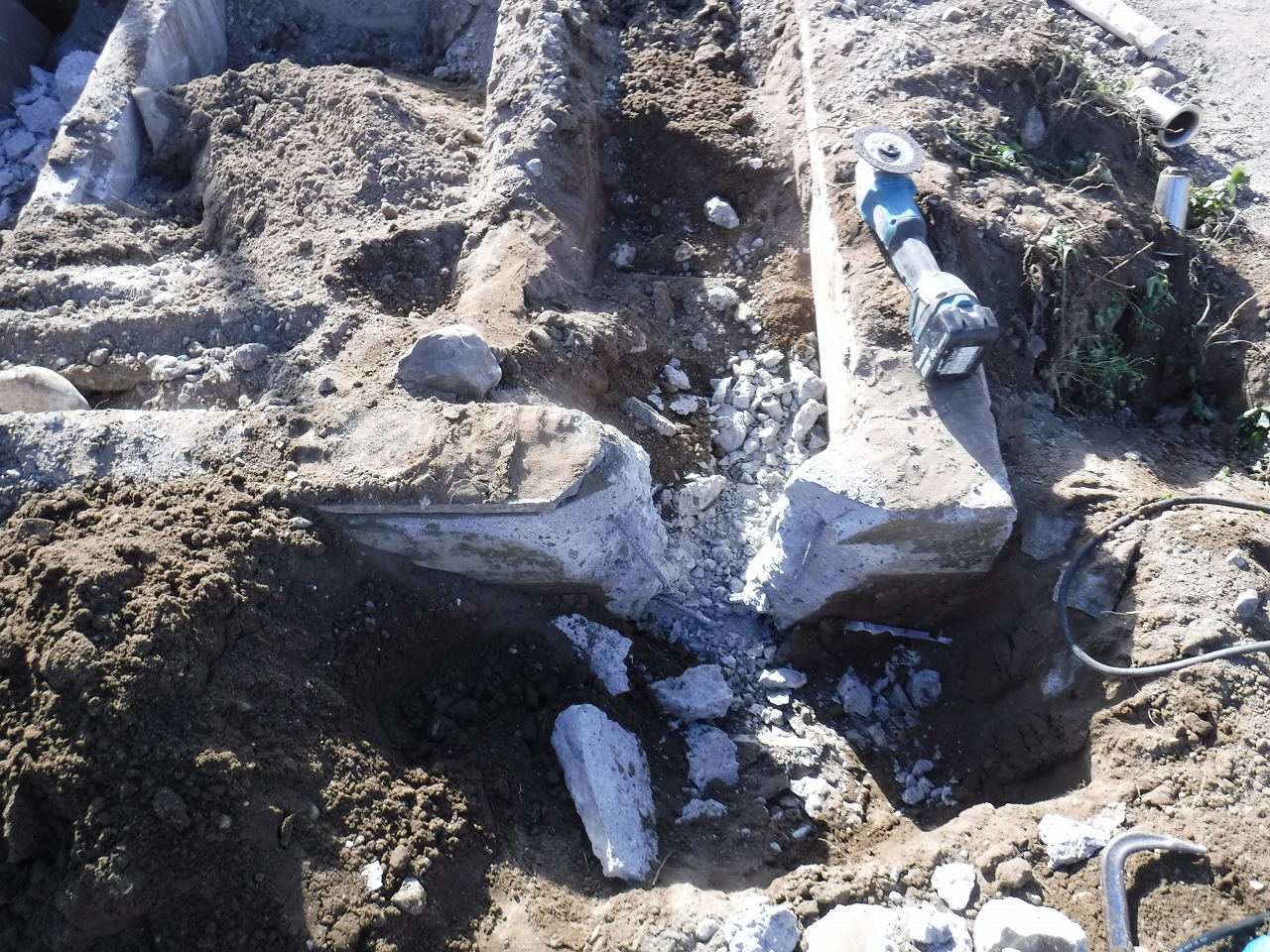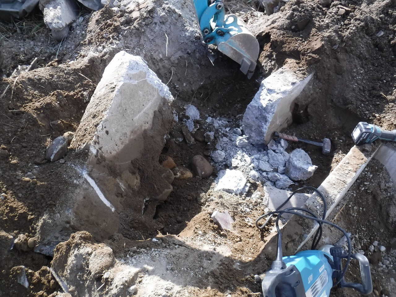 基礎部分の撤去では、電動工具やブレーカーを使用し、コンクリートを細かく割りながら作業を進めました。