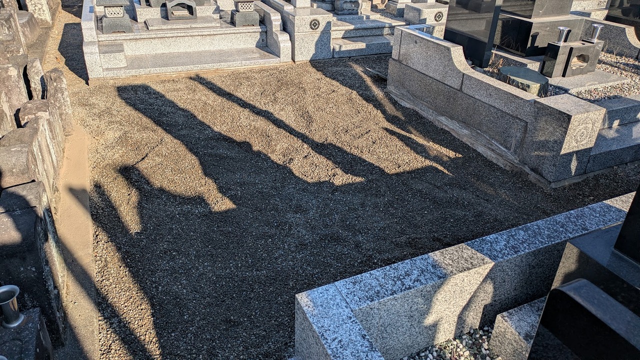 隣接するお墓との境界を傷つけることなく、隅々まで美しく整地された様子を見て、お施主様からも「これで安心しました」と安堵のお言葉をいただくことができました。
