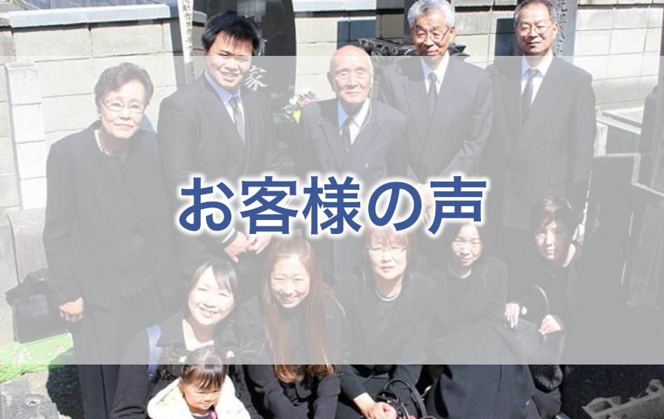 ここでは、当店でお墓を建立や建替えをご依頼いただいたお施主様から頂戴しました、ご感想やお声を掲載させていただいています。お施主様、ありがとうございました。